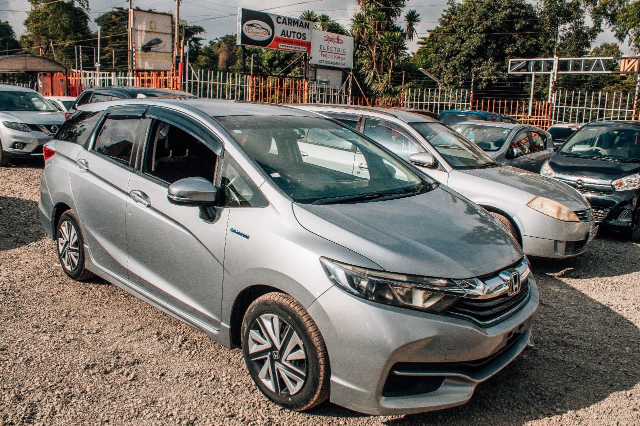 The 2017 Honda Fit Shuttle Hybrid, in a sleek silver color, is a practical and fuel-efficient station wagon designed for comfort and versatility. Powered by a 1500cc hybrid engine, it delivers excellent fuel economy, averaging 25-30 kilometers per liter, making it an ideal choice for both city driving and long-distance travel. The spacious interior offers ample legroom and cargo space, perfect for families or those with an active lifestyle. Equipped with modern features such as a user-friendly infotainment system, advanced safety features, and a smooth CVT transmission, the Honda Fit Shuttle Hybrid combines reliability, style, and efficiency in a compact yet functional package.